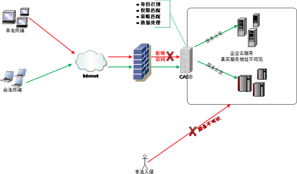 時常會遇到服務被非法入侵或數據被窺視的現象,使用CASB反向代理將服務真實地址隱藏,結合CASB內置安全模塊,可有效保障企業(yè)的服務及數據的安全。