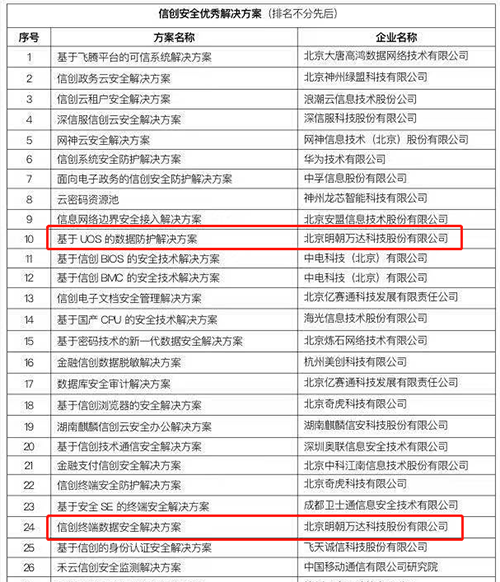 其中,明朝萬(wàn)達(dá)“基于UOS的數(shù)據(jù)防護(hù)解決方案”和“信創(chuàng)終端數(shù)據(jù)安全解決方案”兩項(xiàng)成果成功入選,再次向業(yè)界彰顯了公司卓越的技術(shù)創(chuàng)新能力。