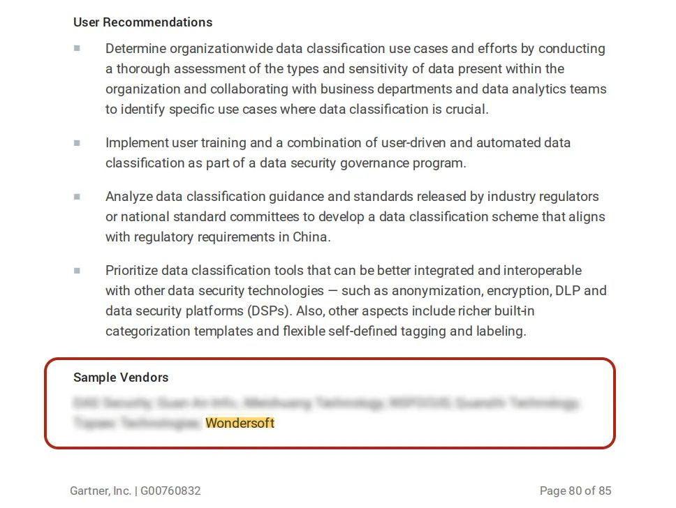近期, Gartner發(fā)布《Hype Cycle? for Data, Analytics and AI in China, 2023》報(bào)告,明朝萬(wàn)達(dá)入選其中“數(shù)據(jù)分類分級(jí)”(Data Classification)領(lǐng)域的代表廠商。