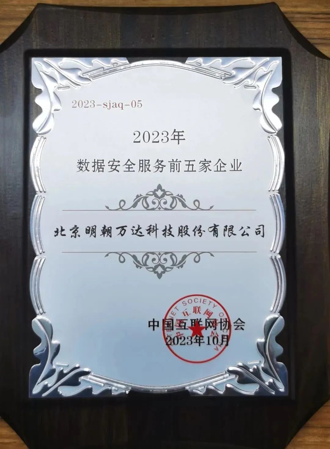 依托過硬的產(chǎn)品技術(shù)實(shí)力和優(yōu)秀的市場表現(xiàn),北京明朝萬達(dá)科技股份有限公司成功入選“數(shù)據(jù)安全服務(wù)前五家企業(yè)”名單。