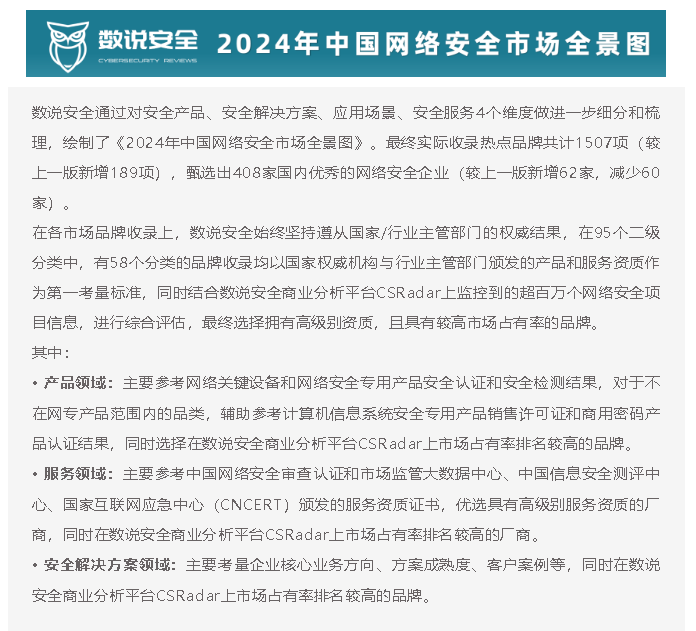 實力認證 | 明朝萬達上榜數(shù)說安全《2024年中國網(wǎng)絡安全市場全景圖》