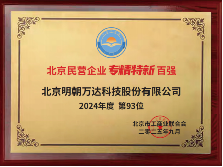 “專精特新”企業(yè)是經(jīng)濟(jì)韌性的重要支撐,是激發(fā)創(chuàng)新、穩(wěn)定產(chǎn)業(yè)鏈供應(yīng)鏈的關(guān)鍵力量。本次評選由北京市工商聯(lián)牽頭,旨在發(fā)掘和表彰一批在細(xì)分領(lǐng)域技術(shù)實力突出、成長性高、市場競爭力強(qiáng)的標(biāo)桿民營企業(yè)。此次入選北京民營企業(yè)專精特新百強(qiáng),不僅是對明朝萬達(dá)專業(yè)化程度、精細(xì)化水平、特色化優(yōu)勢和創(chuàng)新能力的高度認(rèn)可,更是對其市場競爭力與發(fā)展?jié)摿Φ某浞挚隙?。在?dāng)前復(fù)雜多變的市場環(huán)境下,明朝萬達(dá)始終堅持以創(chuàng)新驅(qū)動發(fā)展,積極響應(yīng)國家政策號召,為推動北京民營經(jīng)濟(jì)的高質(zhì)量發(fā)展貢獻(xiàn)力量。
