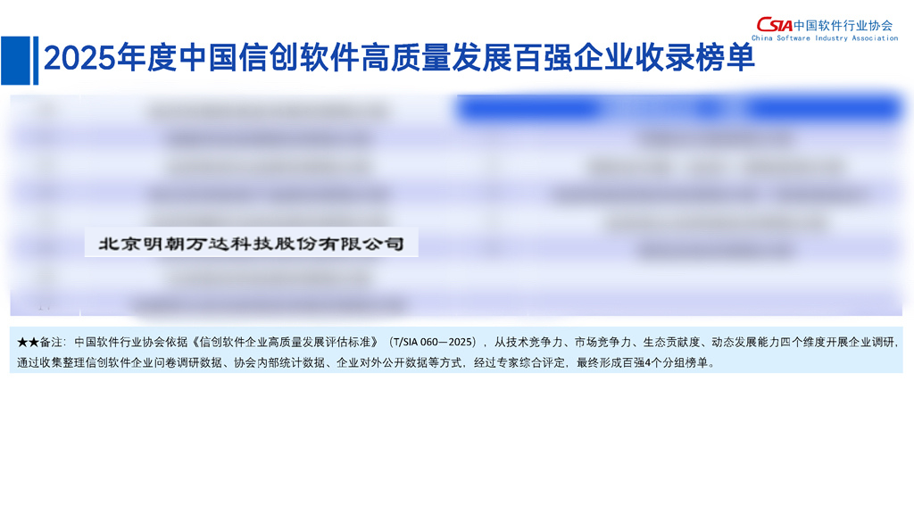 近日,中國軟件行業(yè)協(xié)會(CSIA)首次發(fā)布《2025 中國信創(chuàng)軟件高質(zhì)量發(fā)展報告》,同步揭曉 “2025 年度中國信創(chuàng)軟件高質(zhì)量發(fā)展百強企業(yè)” 榜單。明朝萬達憑借在信息安全領(lǐng)域的技術(shù)積累、市場表現(xiàn)與生態(tài)貢獻,成功入選該榜單 “信息安全類企業(yè)” ,這是行業(yè)對明朝萬達信創(chuàng)安全綜合實力的又一權(quán)威認可。