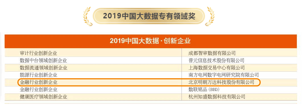 會(huì)上,由中國(guó)大數(shù)據(jù)產(chǎn)業(yè)生態(tài)聯(lián)盟重磅發(fā)布了“2019中國(guó)大數(shù)據(jù)金沙獎(jiǎng)”的評(píng)選結(jié)果,通過(guò)專(zhuān)家委員會(huì)的層層篩選,明朝萬(wàn)達(dá)董事長(zhǎng)兼總裁王志海獲評(píng)“2019中國(guó)數(shù)據(jù)英雄”稱(chēng)號(hào),明朝萬(wàn)達(dá)高級(jí)副總裁、首席技術(shù)官喻波獲評(píng)“2019中國(guó)數(shù)據(jù)大工匠”稱(chēng)號(hào),公司憑借過(guò)去一年在金融大數(shù)據(jù)領(lǐng)域的出色表現(xiàn)以及極高的市場(chǎng)占有率,榮獲“2019中國(guó)大數(shù)據(jù)-金融行業(yè)創(chuàng)新企業(yè)”獎(jiǎng)。