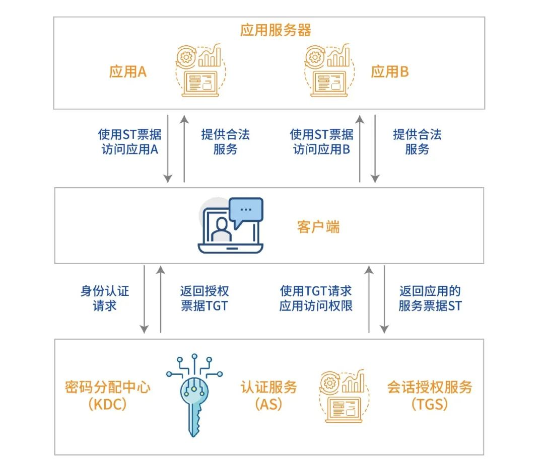 Kerberos是目前使用最廣泛的單點(diǎn)登錄協(xié)議之一,它利用集中式認(rèn)證取代分散認(rèn)證,通過(guò)減少用戶身份認(rèn)證次數(shù),減輕服務(wù)器負(fù)擔(dān);同時(shí)使用對(duì)稱密碼算法實(shí)現(xiàn)通過(guò)可信第三方的認(rèn)證服務(wù)。