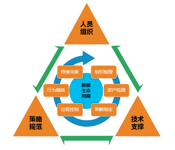 數(shù)據(jù)安全治理并非僅由單一產(chǎn)品或平臺(tái)所構(gòu)建,而是圍繞數(shù)據(jù)生命周期,結(jié)合企業(yè)或組織自身數(shù)據(jù)現(xiàn)狀,建立與制度流程配套的技術(shù)和工具,持續(xù)提升企業(yè)或組織的數(shù)據(jù)安全防護(hù)能力,如下圖所示: