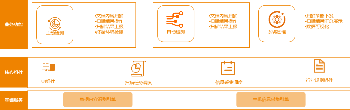 根據(jù)預(yù)先定義的規(guī)則對終端本地文檔內(nèi)容進(jìn)行掃描,進(jìn)而對敏感文檔進(jìn)行審計(jì)。掃描規(guī)則支持實(shí)時更新,系統(tǒng)還支持設(shè)置不同的掃描模式:一種是以效率優(yōu)先的快速掃描模式;一種是以掃描內(nèi)容更全面的詳細(xì)掃描模式。用戶可以根據(jù)關(guān)注業(yè)務(wù)的類型選擇不同的掃描模式。