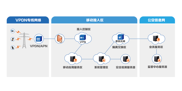 在現(xiàn)有業(yè)務(wù)環(huán)境里,警員需要使用終端連接運(yùn)營(yíng)商VPDN/APN專線,并撥通VPN客戶端,訪問移動(dòng)警務(wù)應(yīng)用,并通過單向光閘獲取到公安信息網(wǎng)內(nèi)數(shù)據(jù)信息。閘獲取到公安信息網(wǎng)內(nèi)數(shù)據(jù)信息。