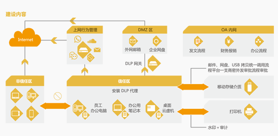 ? ? ? 通過安裝部署數(shù)據(jù)防泄漏產(chǎn)品,對(duì)銀聯(lián)辦公環(huán)境中的相關(guān)文檔信息、業(yè)務(wù)系統(tǒng)導(dǎo)出信息及數(shù)據(jù)庫導(dǎo)出信息等進(jìn)行安全防護(hù),確保不被外部入侵違法獲得及內(nèi)部違規(guī)訪問外泄。