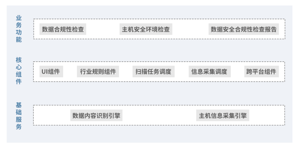 1、數(shù)據(jù)安全合規(guī)檢查服務(wù)使用自主研發(fā)的合規(guī)檢查工具,該工具的功能架構(gòu)示意圖如下圖所示: