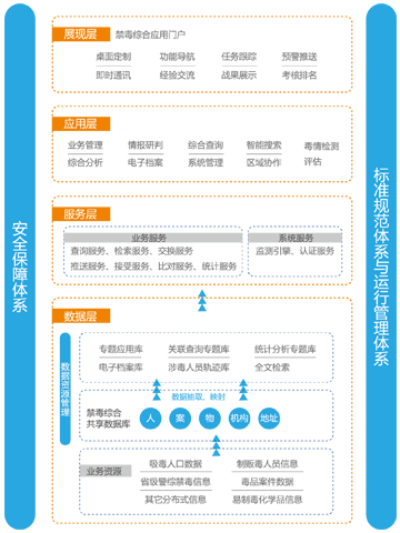 ? ? ? 禁毒綜合應用系統(tǒng)是以公安信息網(wǎng)為依托,以公安部禁毒局、省禁毒總隊為應用主體,提供包括禁毒信息綜合數(shù)據(jù)庫群和禁毒信息綜合門戶、禁毒業(yè)務管理與協(xié)同系統(tǒng)、信息應用系統(tǒng)、跨區(qū)域協(xié)作系統(tǒng)、系統(tǒng)應用安全管理平臺等模塊的公安禁毒綜合性應用平臺。