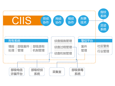 ? ? ??CIIS 刑事案件一體化偵辦平臺(tái)以刑事案件偵查辦理過程為主線,以現(xiàn)有信息系統(tǒng)和信息資源庫(kù)為基礎(chǔ),以業(yè)務(wù)信息系統(tǒng)及其配套的工作機(jī)制為核心,以部省兩級(jí)業(yè)務(wù)系統(tǒng)、刑事技術(shù)系統(tǒng)、警綜平臺(tái)、情報(bào)平臺(tái)為觸角,全面關(guān)聯(lián)刑偵、技偵、網(wǎng)偵、視偵、刑事技術(shù)以及偵查員的實(shí)時(shí)反饋信息,將業(yè)務(wù)流融合為信息流。